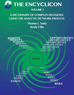 This is the first volume of the series of Encyclicon books. Each of the books contains different models from different years, collected by a different author along with Thomas L. Saaty and although all books tackle similar topics there are different models and different approaches on how to summarize and represent models for general use. These books are meant as a reference guide when you try to set up ANP or AHP complex decision models. The case studies in the books are linked to online reference material related to that which often include the super decision model, power point presentation and the original report of the case.