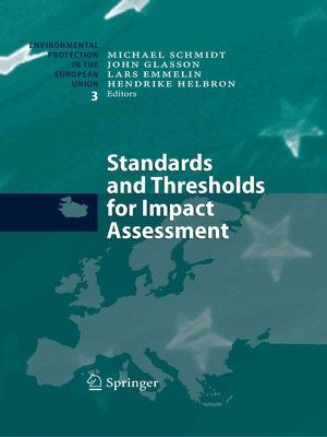 Standards and Thresholds play an important role in many stages of the Environmental Impact Assessment (EIA) process. They can be legally-binding or guidance values and are linked to environmental data. This publication provides a comprehensive collection of standards and thresholds, their derivation and application in case studies of EIA projects. The first part introduces the nature of standards and thresholds and key drivers for their determination. The book then describes, in Part II, technical standards from the perspective of EIA projects. Part III addresses the issue from the other side, environment and human health, and discusses the assessment of impacts on the sensitivity or value of environmental and health components. Part IV sets out some emerging issues for standard and threshold with reference to new sectors and with recent instruments. The book concludes in Part V with the role of monitoring, and final implementation.