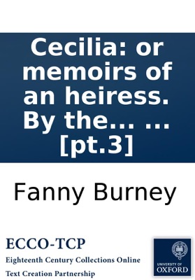 Cecilia: or memoirs of an heiress. By the author of Evelina. In five volumes. ... [pt.3], Fanny Burney. Cecilia: or memoirs of an heiress. By the author of Evelina. In five volumes. ... Burney, Fanny, 1752-1840. 5v. ; 12⁰. London : printed for T. Payne and Son, and T. Cadell, 1782. Author of Evelina = Frances d'Arblay. Reproduction of original from the British Library. English Short Title Catalog, ESTCT102228. Electronic data. Farmington Hills, Mich. : Thomson Gale, 2003. Page image (PNG). Digitized image of the microfilm version produced in Woodbridge, CT by Research Publications, 1982-2002 (later known as Primary Source Microfilm, an imprint of the Gale Group).