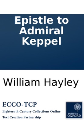 Epistle to Admiral Keppel, William Hayley. Epistle to Admiral Keppel Hayley, William, 1745-1820. 20p. ; 4⁰. London : printed for Fielding and Walker, 1779. Anonymous. By William Hayley. With a half-title. Verse. On his acquittal. Reproduction of original from the British Library. English Short Title Catalog, ESTCT133426. Electronic data. Farmington Hills, Mich. : Thomson Gale, 2003. Page image (PNG). Digitized image of the microfilm version produced in Woodbridge, CT by Research Publications, 1982-2002 (later known as Primary Source Microfilm, an imprint of the Gale Group).