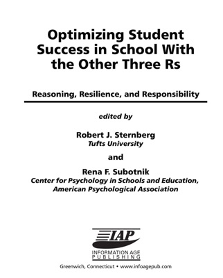 The Other Three R’s model began as an American Psychological Association (APA) initiative, sponsored by Robert J. Sternberg, IBM Professor of Psychology and Education at Yale University and Past President of the APA. For both this initiative and this edited volume, Sternberg assembled a diverse team of experts who identified reasoning, resilience and responsibility as three learnable skills that, when taken together, have great potential for increasing academic success. The authors of this volume present in detail their evidence-based arguments for promoting TOTRs in schools as a way to optimize student success.