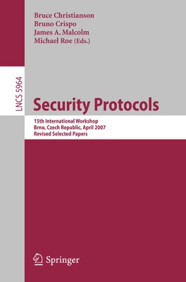 This book constitutes the thoroughly refereed post-proceedings of the 15th International Workshop on Security Protocols, held in Brno, Czech Republic, in April 2007.