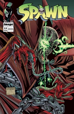 Terry , mistakenly targeted as Spawn , stands no chance against Overtkill. Luckily , Spawn escapes from Twitch in time to help his old friend. He removes Terry from harms way , while his cape intercepts one of Overtkill's laser beams. Twitch , in hot pursuit , arrives on Spawn's trail just in time to fire a well placed shot in Overtkill's ear , disrupting his programming.