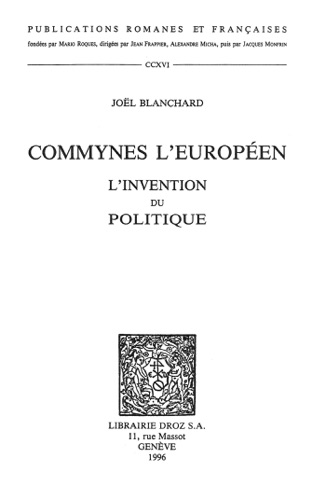 Commynes l'Européen : l'invention du politique - Joël Blanchard